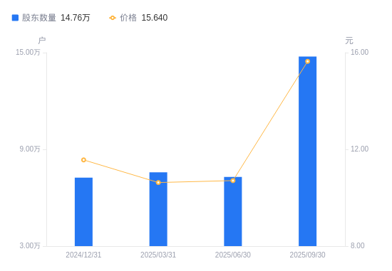 近一年(2024年9月30日至2025年9月30日),中国电影A股股东户数从7.97万户,增加至14.76万户,增幅85.18%,区间股价上涨39.10%。