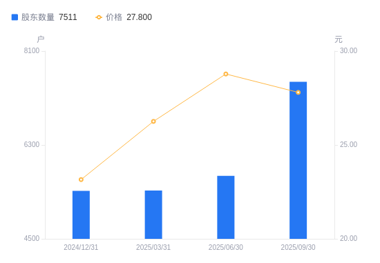 近一年(2024年9月30日至2025年9月30日),中触媒A股股东户数从6169户,增加至7511户,增幅21.75%,区间股价上涨54.22%。