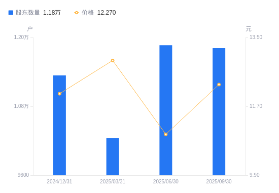 近一年(2024年9月30日至2025年9月30日),建霖家居A股股东户数从1.18万户,增加至1.18万户,增幅0.35%,区间股价上涨10.94%。