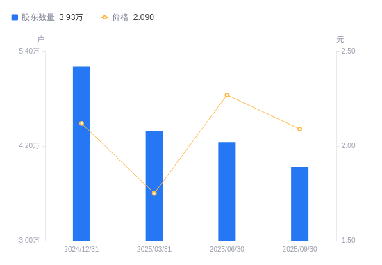 近一年(2024年9月30日至2025年9月30日),华远控股A股股东户数从4.31万户,减低至3.93万户,降幅8.74%,区间股价上涨40.27%。