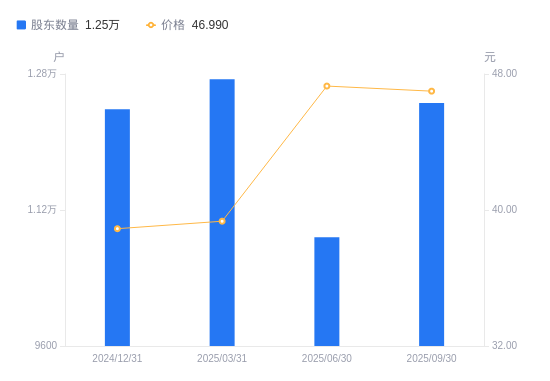 10月29日消息,数据显示,截至2025年9月30日,禾川科技A股股东总户数为1.25万户,较上期(2025年6月30日)增加1582户,增幅14.54%。公司最新A股总股本为1.51亿股,其中流通A股1.11亿股,户均持有流通A股数量为8898.59股,较上期减少1294.13股,降幅12.70%;户均持流通A股市值41.81万元,较上期减少6.39万元,降幅13.25%。