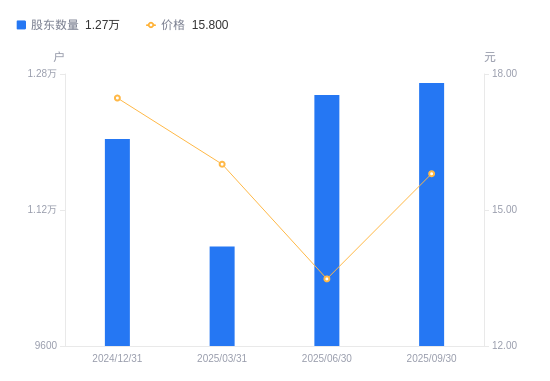 10月29日消息,数据显示,截至2025年9月30日,华阳国际A股股东总户数为1.27万户,较上期(2025年6月30日)增加141户,增幅1.12%。公司最新A股总股本为1.96亿股,其中流通A股1.52亿股,户均持有流通A股数量为1.2万股,较上期减少134.3股,降幅1.11%;户均持流通A股市值18.9万元,较上期增加2.59万元,增幅15.91%。