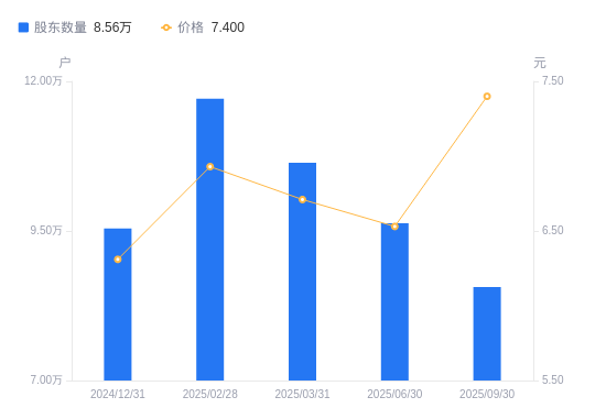 近一年(2024年9月30日至2025年9月30日),紫江企业A股股东户数从7.91万户,增加至8.56万户,增幅8.34%,区间股价上涨39.10%。