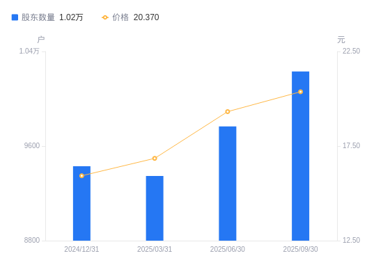 近一年(2024年9月30日至2025年9月30日),西上海A股股东户数从9192户,增加至1.02万户,增幅11.30%,区间股价上涨26.68%。