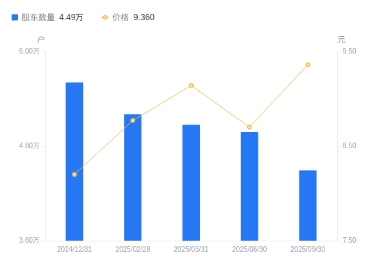 10月29日消息,数据显示,截至2025年9月30日,佳力图A股股东总户数为4.49万户,较上期(2025年6月30日)减少4845户,降幅9.74%。公司最新A股总股本为5.42亿股,其中流通A股5.42亿股,户均持有流通A股数量为1.21万股,较上期增加1175.27股,增幅10.79%;户均持流通A股市值11.29万元,较上期增加1.82万元,增幅19.20%。