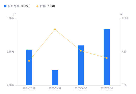 近一年(2024年9月30日至2025年9月30日),派斯林A股股东户数从2.99万户,增加至3.02万户,增幅0.90%,区间股价上涨14.75%。