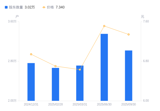 10月29日消息,数据显示,截至2025年9月30日,金陵饭店A股股东总户数为3.02万户,较上期(2025年6月30日)减少3351户,降幅10.00%。公司最新A股总股本为3.9亿股,其中流通A股3.9亿股,户均持有流通A股数量为1.29万股,较上期增加1292.33股,增幅11.11%;户均持流通A股市值9.49万元,较上期增加7507.79元,增幅8.59%。