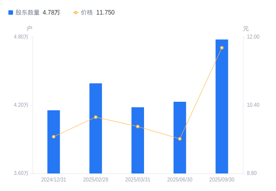 近一年(2024年9月30日至2025年9月30日),依顿电子A股股东户数从3.76万户,增加至4.78万户,增幅27.25%,区间股价上涨43.61%。