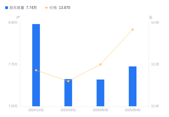 近一年(2024年9月30日至2025年9月30日),航宇微A股股东户数从7.09万户,增加至7.74万户,增幅9.10%,区间股价上涨31.10%。