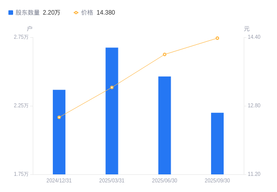 近一年(2024年9月30日至2025年9月30日),好利科技A股股东户数从2.54万户,减低至2.2万户,降幅13.54%,区间股价上涨21.53%。
