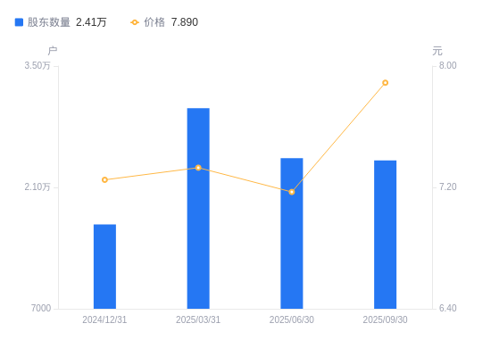 近一年(2024年9月30日至2025年9月30日),君禾股份A股股东户数从1.57万户,增加至2.41万户,增幅53.29%,区间股价上涨41.91%。