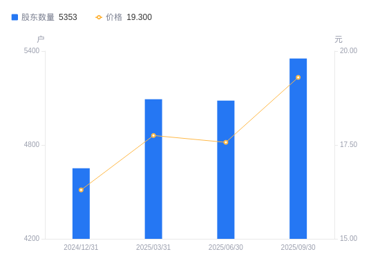 近一年(2024年9月30日至2025年9月30日),明志科技A股股东户数从4082户,增加至5353户,增幅31.14%,区间股价上涨36.28%。