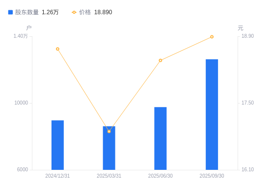 近一年(2024年9月30日至2025年9月30日),大庆华科A股股东户数从9251户,增加至1.26万户,增幅36.44%,区间股价上涨31.50%。