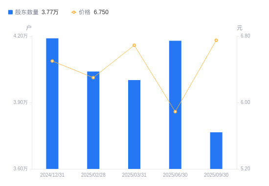 近一年(2024年9月30日至2025年9月30日),开滦股份A股股东户数从4.13万户,减低至3.77万户,降幅8.76%,区间股价上涨1.81%。