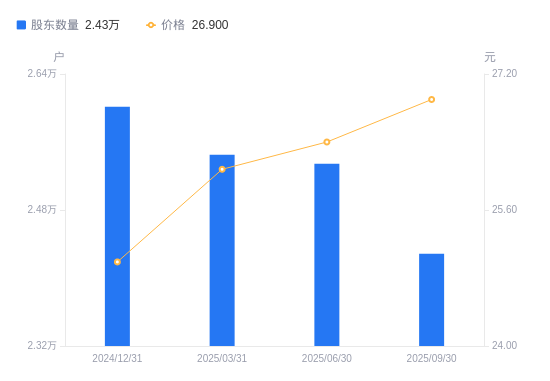 近一年(2024年9月30日至2025年9月30日),成大生物A股股东户数从2.6万户,减低至2.43万户,降幅6.77%,区间股价上涨9.18%。