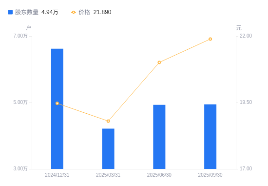 近一年(2024年9月30日至2025年9月30日),七一二A股股东户数从3.48万户,增加至4.94万户,增幅42.26%,区间股价上涨30.53%。