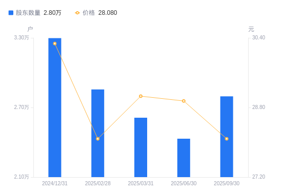 10月29日消息,数据显示,截至2025年9月30日,新天然气A股股东总户数为2.8万户,较上期(2025年6月30日)增加3658户,增幅15.05%。公司最新A股总股本为4.24亿股,其中流通A股4.23亿股,户均持有流通A股数量为1.51万股,较上期减少2277.53股,降幅13.08%;户均持流通A股市值42.5万元,较上期减少7.91万元,降幅15.69%。