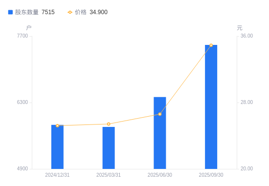 近一年(2024年9月30日至2025年9月30日),高华科技A股股东户数从5554户,增加至7515户,增幅35.31%,区间股价上涨54.68%。