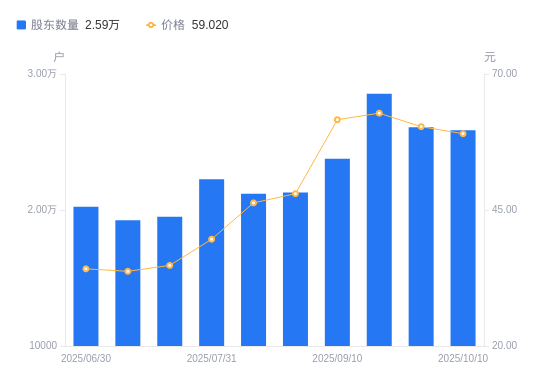 近一年(2024年9月30日至2025年9月30日),博杰股份A股股东户数从1.66万户,增加至2.61万户,增幅57.32%,区间股价上涨126.39%。