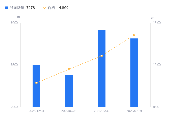 近一年(2024年9月30日至2025年9月30日),保立佳A股股东户数从6431户,增加至7078户,增幅10.06%,区间股价上涨58.09%。