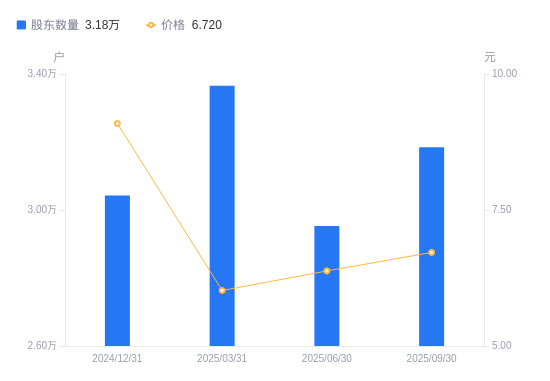 近一年(2024年9月30日至2025年9月30日),友好集团A股股东户数从1.89万户,增加至3.18万户,增幅68.61%,区间股价上涨23.76%。