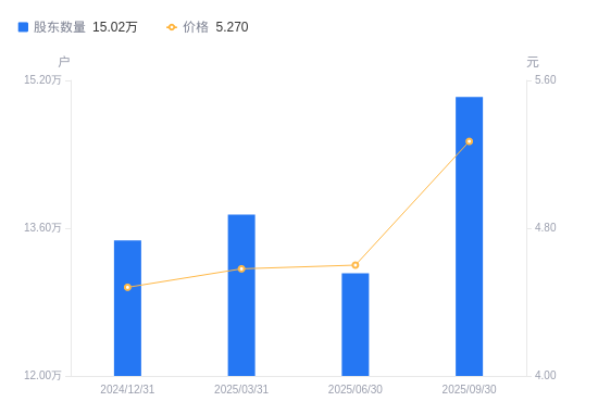 近一年(2024年9月30日至2025年9月30日),怡亚通A股股东户数从11.49万户,增加至15.02万户,增幅30.67%,区间股价上涨48.03%。