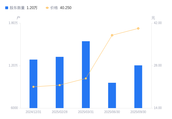近一年(2024年9月30日至2025年9月30日),豪美新材A股股东户数从2.16万户,减低至1.2万户,降幅44.21%,区间股价上涨169.34%。