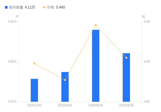近一年(2024年9月30日至2025年9月30日),辉隆股份A股股东户数从3.59万户,增加至4.11万户,增幅14.32%,区间股价上涨12.90%。