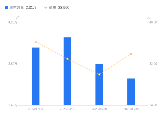 近一年(2024年9月30日至2025年9月30日),大连圣亚A股股东户数从1.78万户,增加至2.31万户,增幅29.83%,区间股价上涨84.07%。