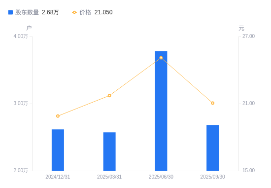 近一年(2024年9月30日至2025年9月30日),电魂网络A股股东户数从3.04万户,减低至2.68万户,降幅11.63%,区间股价上涨15.67%。