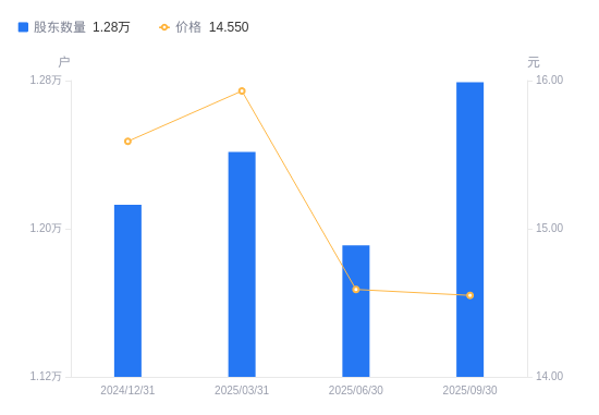 近一年(2024年9月30日至2025年9月30日),亚辉龙A股股东户数从7171户,增加至1.28万户,增幅78.37%,区间股价下跌31.01%。