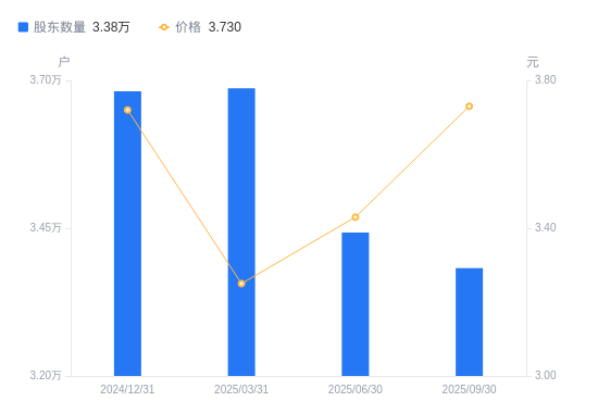 近一年(2024年9月30日至2025年9月30日),光明地产A股股东户数从4.1万户,减低至3.38万户,降幅17.54%,区间股价上涨59.40%。