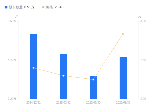 近一年(2024年9月30日至2025年9月30日),卓郎智能A股股东户数从6.65万户,增加至8.51万户,增幅27.89%,区间股价上涨71.08%。