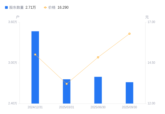 近一年(2024年9月30日至2025年9月30日),明阳电路A股股东户数从2.3万户,增加至2.71万户,增幅17.99%,区间股价上涨34.85%。