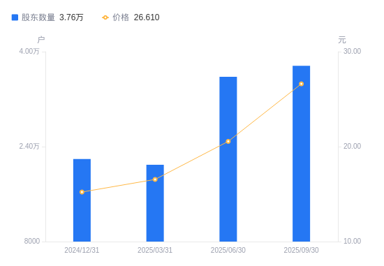 近一年(2024年9月30日至2025年9月30日),玉禾田A股股东户数从2万户,增加至3.76万户,增幅87.70%,区间股价上涨118.56%。