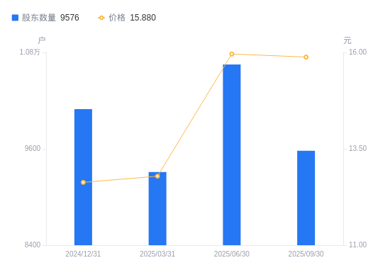 近一年(2024年9月30日至2025年9月30日),建研设计A股股东户数从1.12万户,减低至9576户,降幅14.86%,区间股价上涨29.42%。