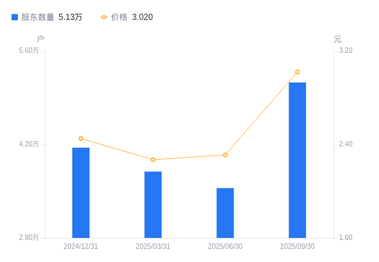 近一年(2024年9月30日至2025年9月30日),中捷资源A股股东户数从3.03万户,增加至5.13万户,增幅69.24%,区间股价上涨62.37%。