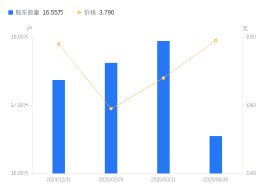 近一年(2024年9月30日至2025年9月30日),南山铝业A股股东户数从15.59万户,增加至18.37万户,增幅17.80%,区间股价上涨2.33%。
