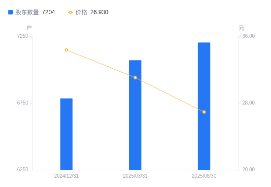 10月29日消息,数据显示,截至2025年9月30日,上声电子A股股东总户数为9221户,较上期(2025年6月30日)增加2017户,增幅28.00%。公司最新A股总股本为1.63亿股,其中流通A股1.63亿股,户均持有流通A股数量为1.77万股,较上期减少4944.62股,降幅21.87%;户均持流通A股市值51.78万元,较上期减少9.1万元,降幅14.94%。