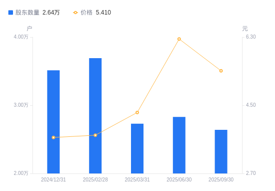 近一年(2024年9月30日至2025年9月30日),ST联合A股股东户数从4.16万户,减低至2.64万户,降幅36.52%,区间股价上涨56.81%。
