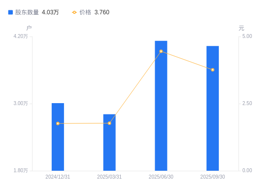 近一年(2024年9月30日至2025年9月30日),贤丰控股A股股东户数从3.33万户,增加至4.03万户,增幅20.94%,区间股价上涨213.33%。