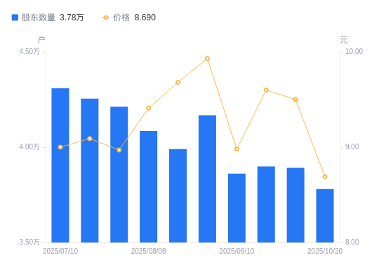 近一年(2024年9月30日至2025年9月30日),光韵达A股股东户数从3.75万户,增加至3.89万户,增幅3.79%,区间股价上涨47.06%。