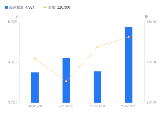 近一年(2024年9月30日至2025年9月30日),华大九天A股股东户数从2.41万户,增加至4.88万户,增幅102.10%,区间股价上涨53.74%。