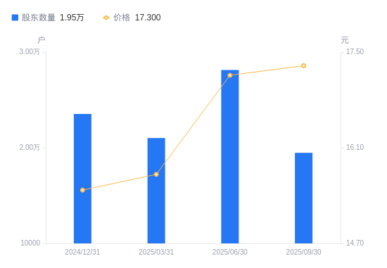 近一年(2024年9月30日至2025年9月30日),睿能科技A股股东户数从2.34万户,减低至1.95万户,降幅16.92%,区间股价上涨29.39%。