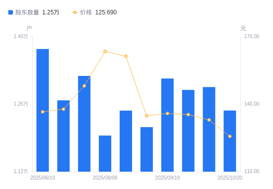 近一年(2024年10月24日至2025年9月30日),六九一二A股股东户数从3.5万户,减低至1.29万户,降幅63.16%,区间股价下跌20.04%。