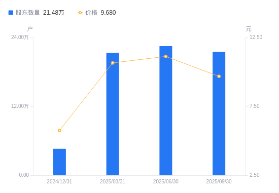 近一年(2024年9月30日至2025年9月30日),海南华铁A股股东户数从2.98万户,增加至21.48万户,增幅621.52%,区间股价上涨98.56%。