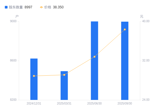 10月29日消息,数据显示,截至2025年9月30日,灿瑞科技A股股东总户数为8997户,较上期(2025年6月30日)减少2户,降幅0.02%。公司最新A股总股本为1.15亿股,其中流通A股4329.78万股,户均持有流通A股数量为4812.47股,较上期增加1.07股,增幅0.02%;户均持流通A股市值18.46万元,较上期增加2.67万元,增幅16.95%。
