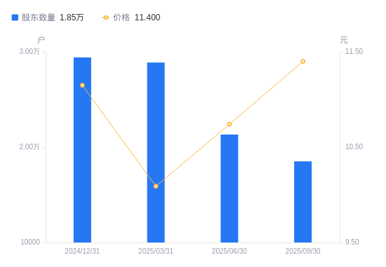 近一年(2024年9月30日至2025年9月30日),*ST大立A股股东户数从2.85万户,减低至1.85万户,降幅35.02%,区间股价下跌3.63%。