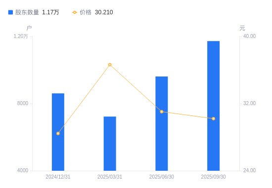 10月29日消息,数据显示,截至2025年9月30日,福光股份A股股东总户数为1.17万户,较上期(2025年6月30日)增加2104户,增幅21.87%。公司最新A股总股本为1.61亿股,其中流通A股1.61亿股,户均持有流通A股数量为1.37万股,较上期减少2994.71股,降幅17.94%;户均持流通A股市值41.37万元,较上期减少10.43万元,降幅20.14%。