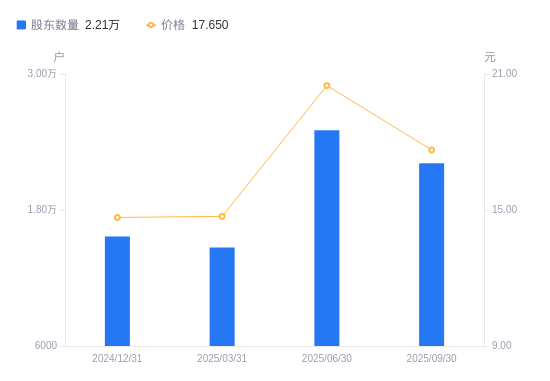 近一年(2024年9月30日至2025年9月30日),正元智慧A股股东户数从1.55万户,增加至2.21万户,增幅42.43%,区间股价上涨25.89%。